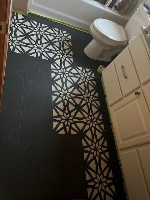 Adding color and stencil to an existing linoleum flooring, takes time and patience.