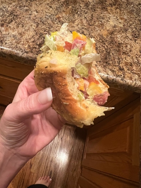 Get shredded lettuce and add submarine dressing to lettuce along with some Italian seasoning and garlic powder. ( Add AFTER you bake the sandwich, so the lettuce doesn’t turn soggy).
